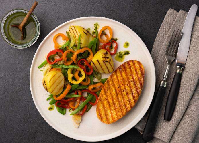 Fromella Grillierte Peperoni mit lauwarmem Kartoffel-Gemüse-Salat