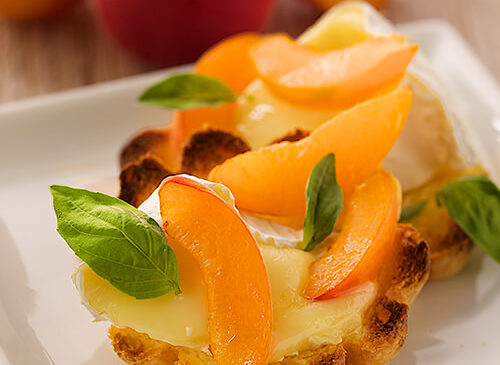 Rausnehmen, mit dem in Stücke geschnittenen Camembert Suisse Classique belegen sowie feinen Aprikosenschnitzen und 5 Min. im Ofen backen.