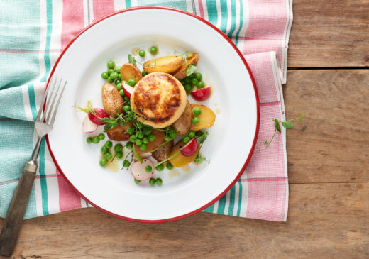 BAER Happily Tommes bei mittlerer Hitze beidseitig je ca. 5 Minuten grillieren. Erbsli zu den Kartoffeln geben und während ca. 1 Minute weitergrillieren. Radisli mit ein wenig Grün vierteln, zu den Kartoffeln geben und mit dem restlichen Öl und Essig vermischen. Mit Salz und Pfeffer abschmecken. Kartoffeln mit den Tommes anrichten und mit Sprossen garnieren.