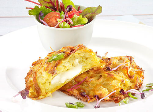 Rösti-Tätschli in der Mitte des auf 220°C vorgeheizten Ofens etwa 20-30 Minuten backen.
