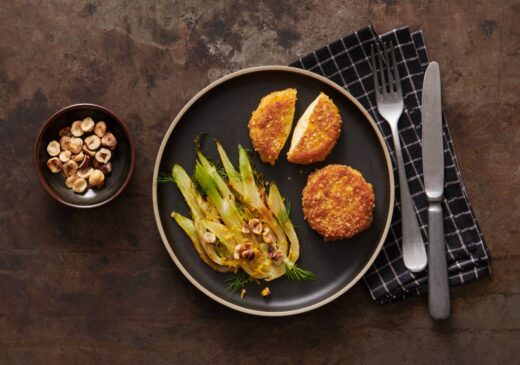 Die Fenchel-Scheiben auf einem Teller anrichten. Mit Zitronensaft und Olivenöl beträufeln. Mit Pfeffer und Salz würzen. Die Nüsse mit der Hand zerkleinern und darüber streuen. Die BAER Panada Bio dazu servieren und geniessen.